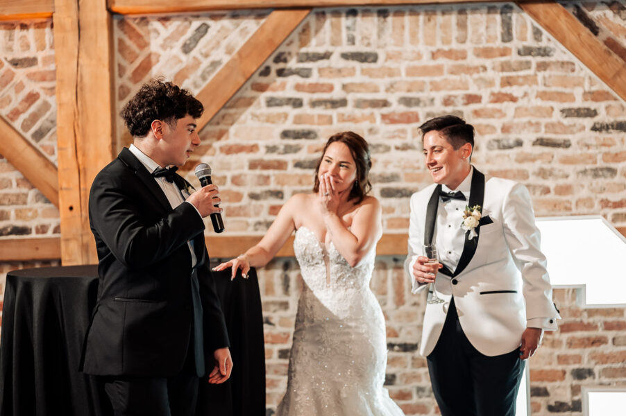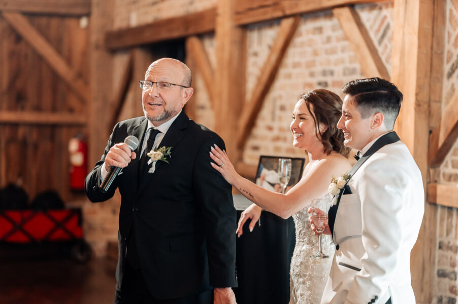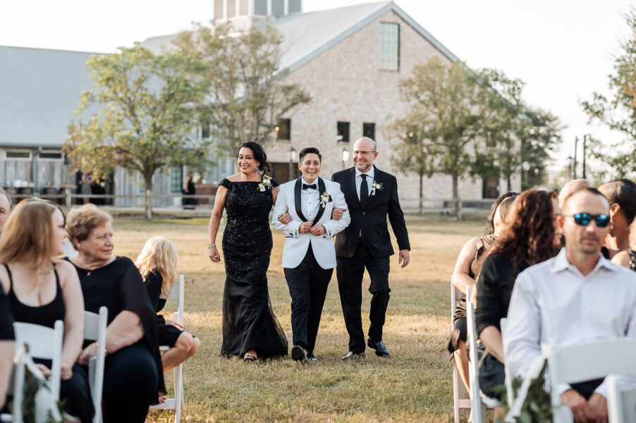 From the heartfelt ceremony led by Luke Oaks to the laughter and dancing on the reception floor, Tausha and Caitlin’s day overflowed with joy. The floral designs by Unforgettable Floral brought vibrant color to the rustic barn setting, while Blush Artistry TX ensured every bridal look was flawless.